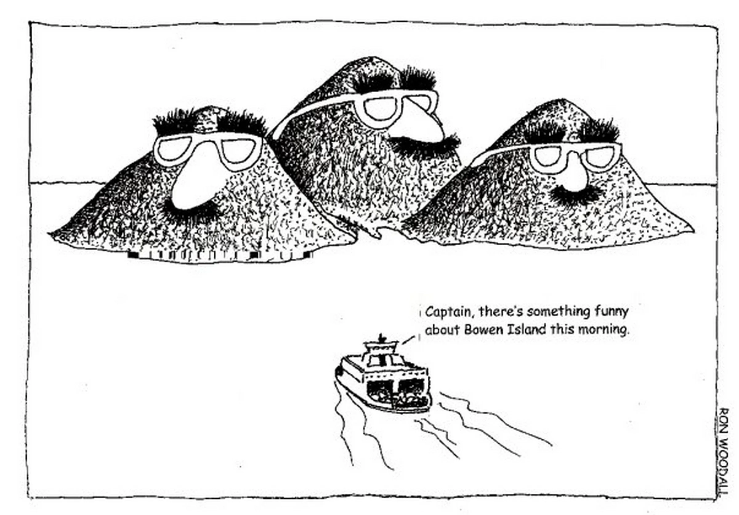 Since moving to Bowen Island 23 years ago, Ron Woodall, 90, has contributed over one thousand cartoons to the Undercurrent newspaper. He sees them as cultural anthropology. He has also painted over five hundred watercolour portraits of islanders.