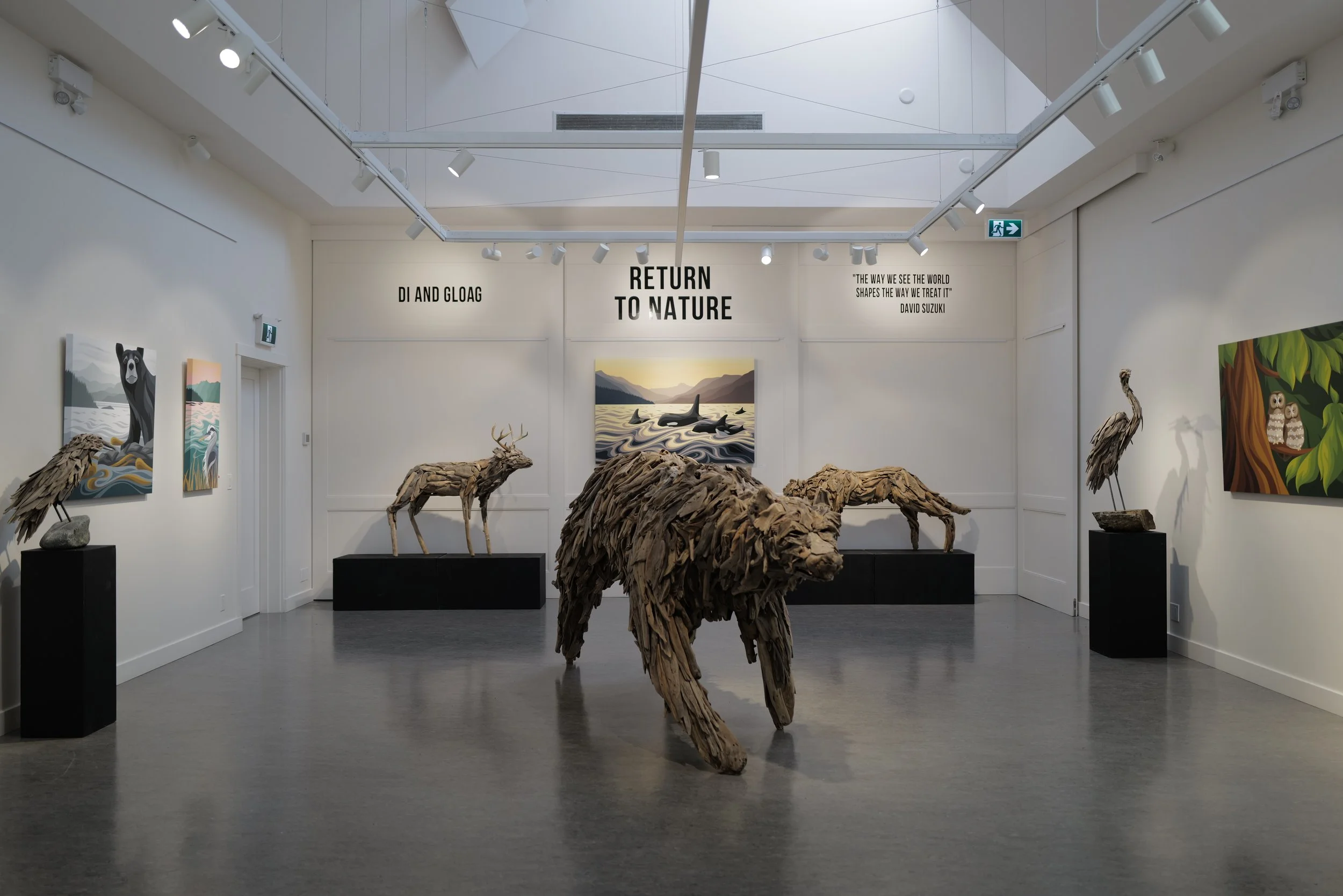 Together Di and Gloag create an immersive space where viewers can walk among the familiar but reimagined. Viewers can reconnect with nature through vibrant landscapes and sculptural wildlife. In helping that dream Di and Gloag will be donating a portion of all sales to the Bowen Island Conservancy and the Bowen Island Community Foundation, organizations dedicated to protecting the island’s ecological integrity and enhancing community engagement and well-being.