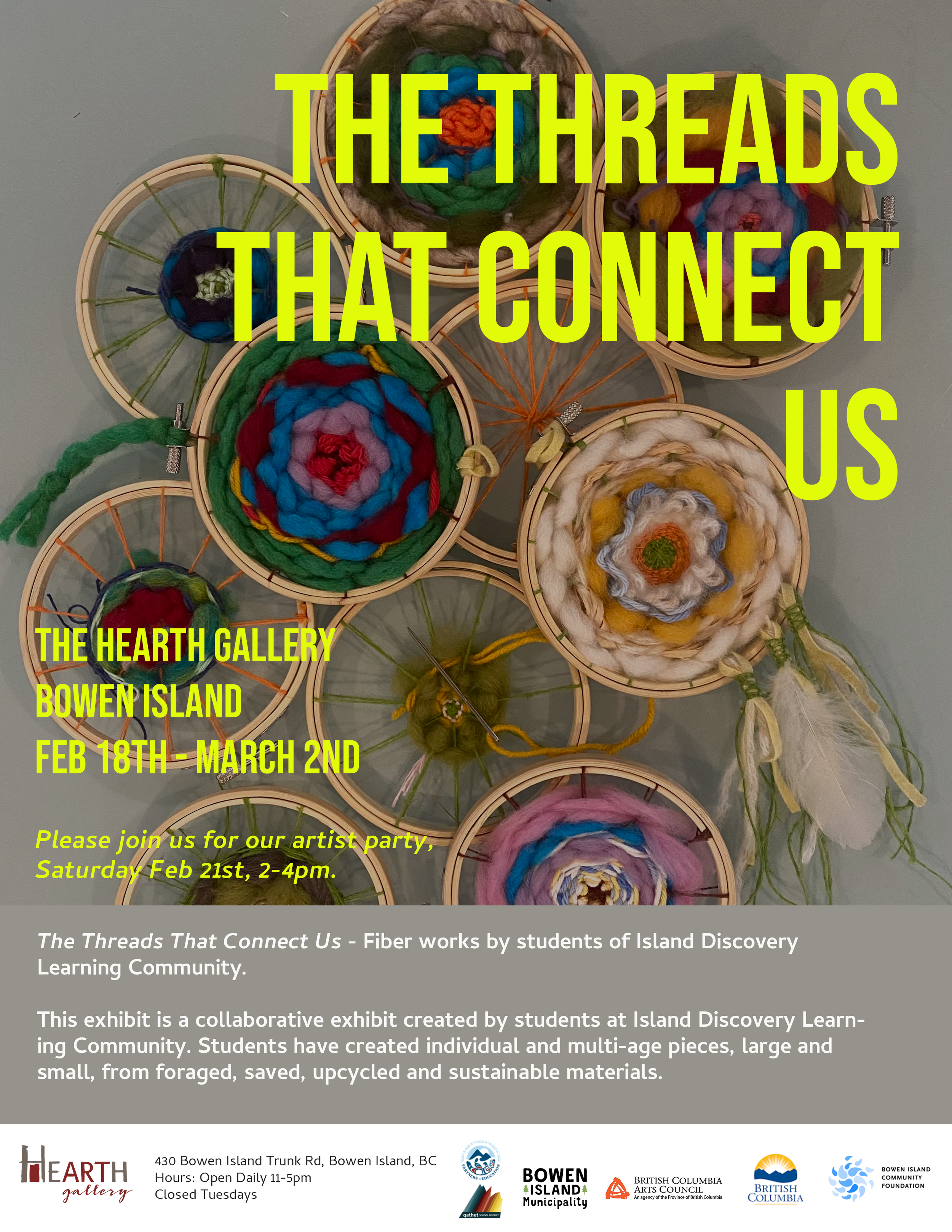 This exhibit is a collaborative exhibit created by students at Island Discovery Learning Community. Students have created individual and multi-age pieces, large and small, from foraged, saved, upcycled and sustainable materials.